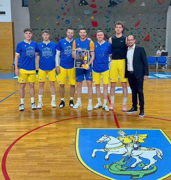 Pred tekmo so se v klubu spomnili na Dina Murića, ki sicer drugo sezono igra za Hopse, ampak je bil Murić kar sedem let v Šenčurju. Danes 36 letnik je bil pet let kapetan ekipe, z 2125 točkami v prvi ligi pa je najboljši strelec Gorenjske gradbene družbe Šenčur. Prav tako je najboljši strelec v drugi ABA ligi, kjer je dosegel 282 točk. Spominsko sliko mu je predal Aleš Puhar, z njim pa so pred fotografski aparat stopili njegovi nekdanji soigralci: Lovro Bolhar, Vukašin Čorić, Matej Rojc, Jan Novak in Domen Petrovič ter Gašper Sluga, ki je bil pred dvema letoma pomočnik glavnega trenerja Miljana Pavkovića.