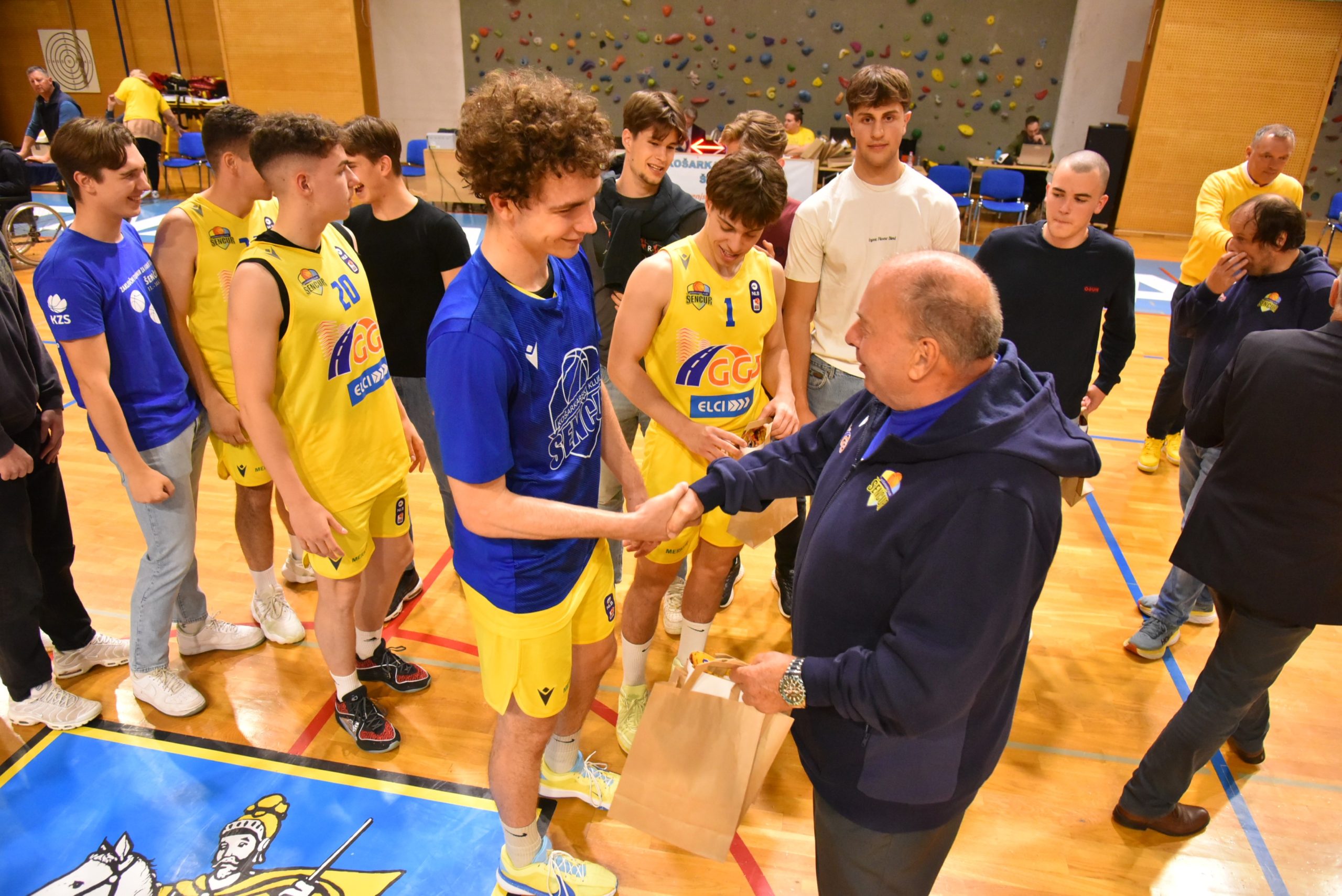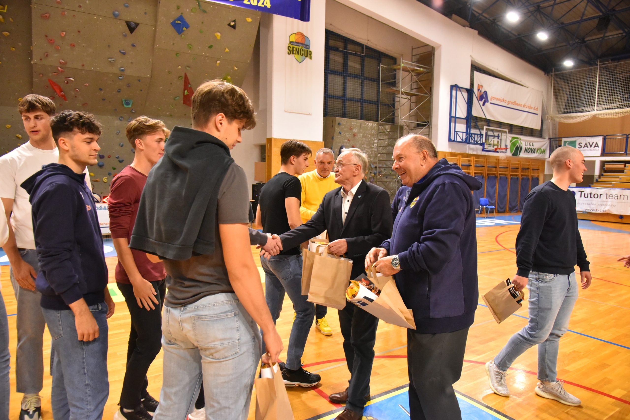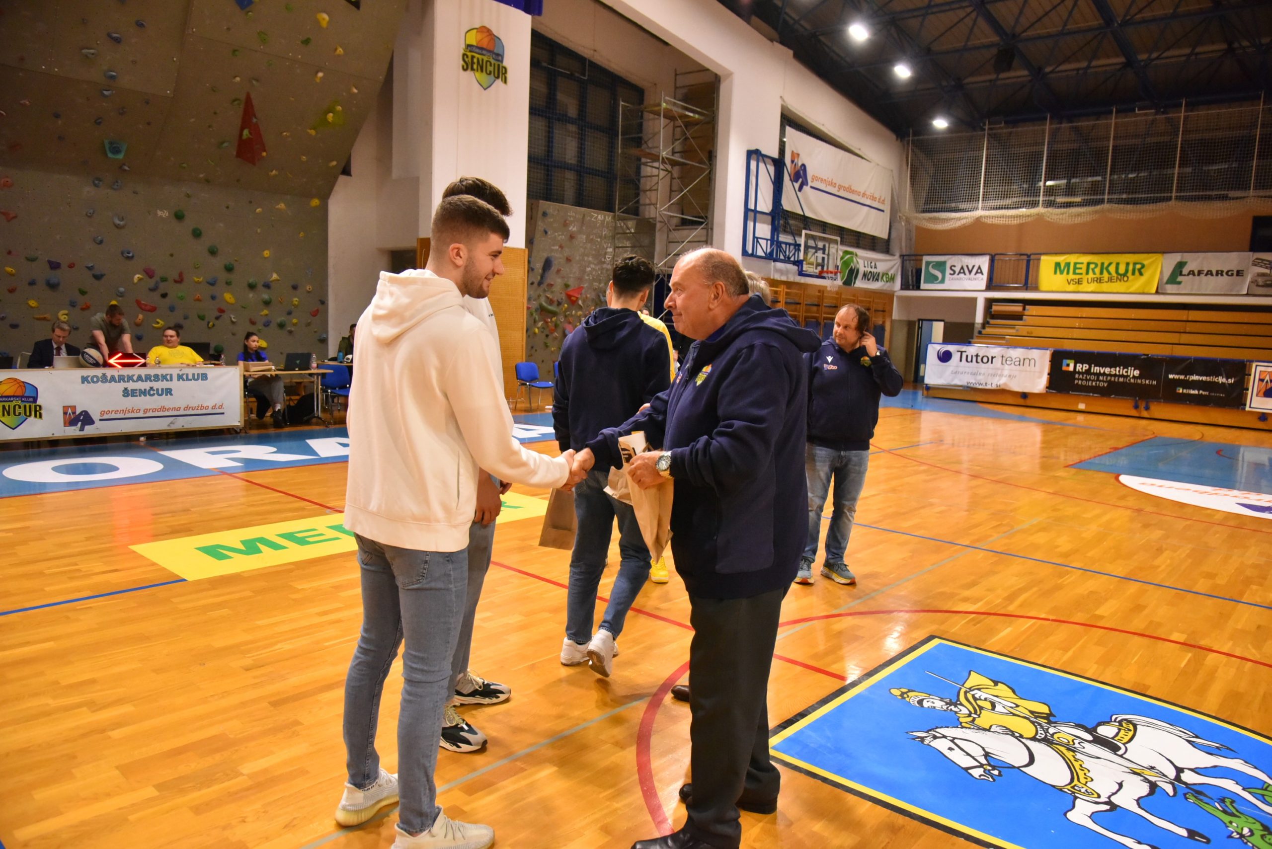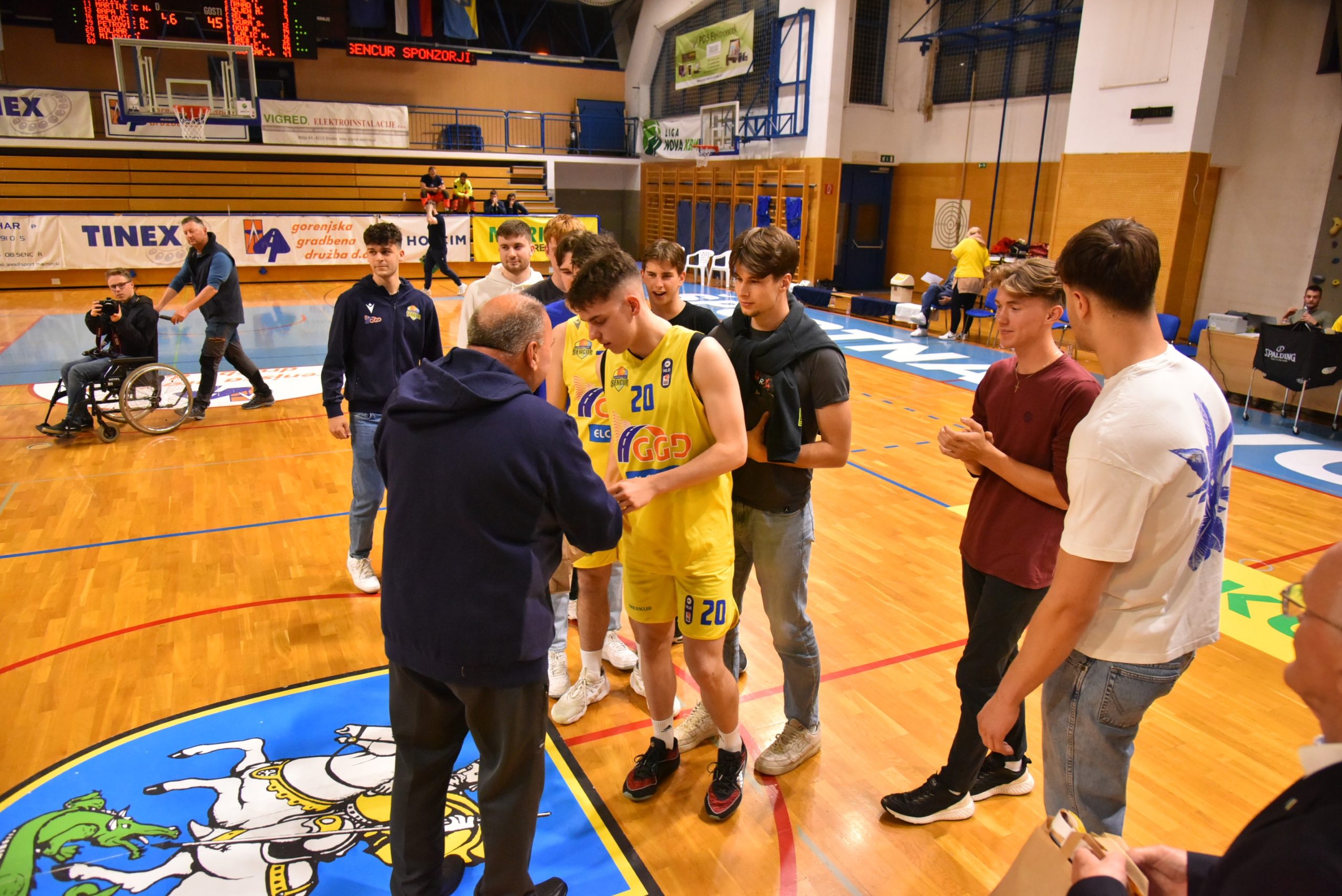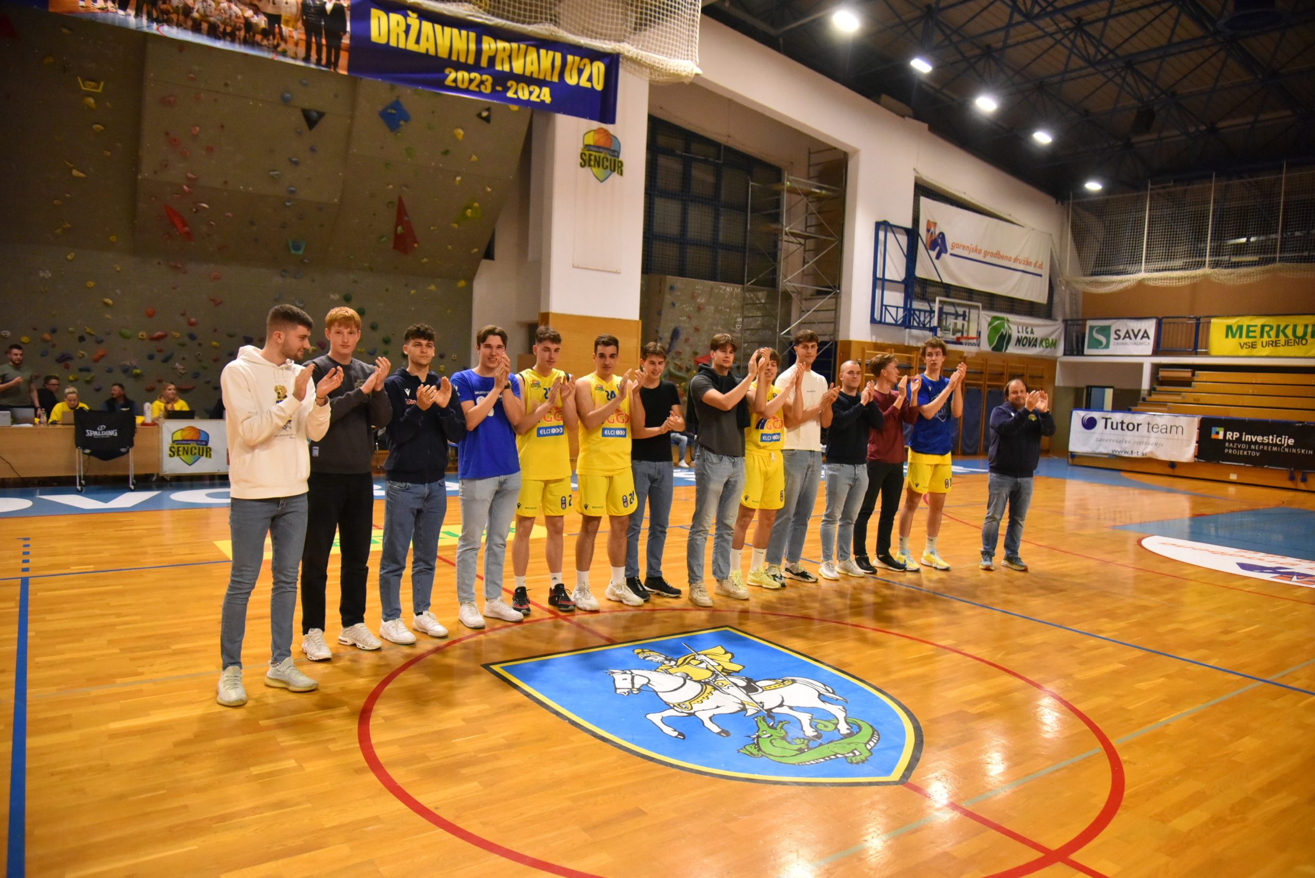 Ob polčasu druge četrtfinalne tekme med GGD Šenčur in Ilirijo se je zbrala zmagovalna ekipa U20 in se še enkrat predstavila avditoriju. Ekipi sta se pridružila župan občine Šenčur Ciril Kozjek in gospod Branko Žiberna, ki dolga leta s podjetjem Gorenjska gradbena družba podpira šenčursko košarko ter pomaga uresničiti športne sanje in cilje. Cilj postati državni prvak je dosežen, zgodovina je spisana, veselje in zadovoljstvo je neizmerno.